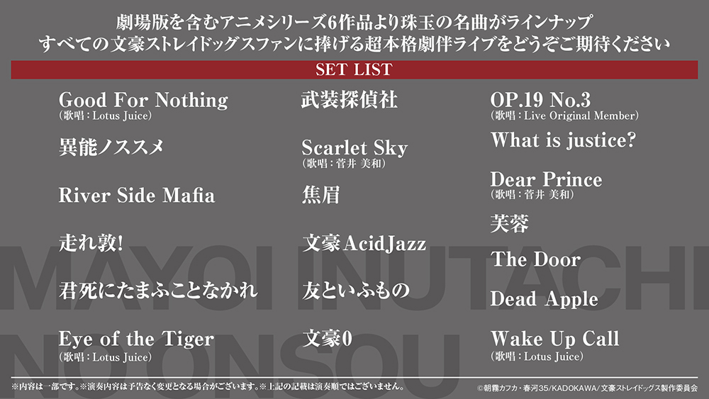 すべての文豪ストレイドッグスファンに捧げる超本格劇伴ライブをどうぞご期待ください。