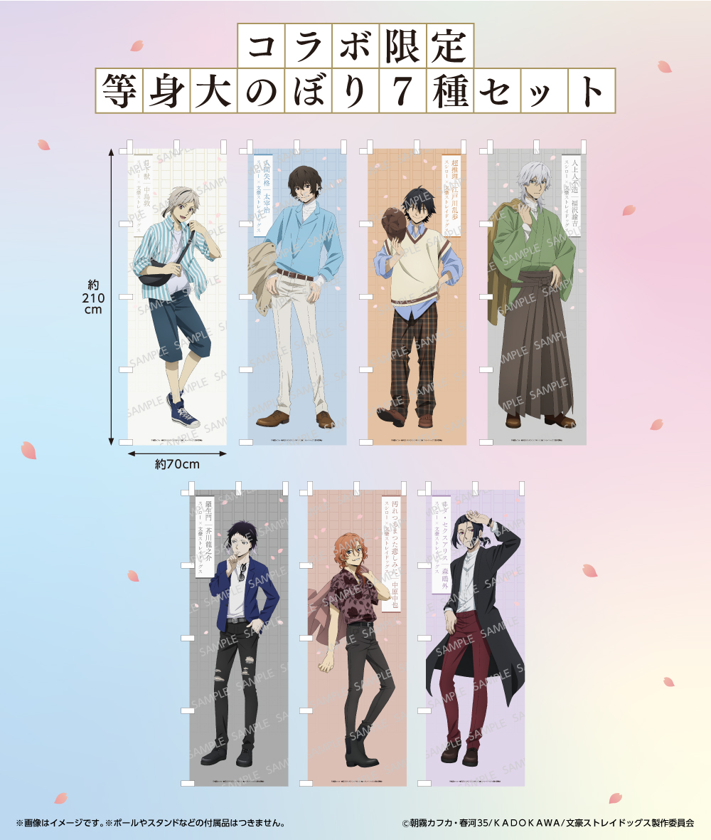 コラボ限定クリアカードに同封されている別紙の二次元コードにアクセスし、シリアルコードを入力すると抽選で100名さまに『文豪ストレイドッグス』コラボ限定「等身大のぼり7種セット」が当たるキャンペーンにご参加いただけます。